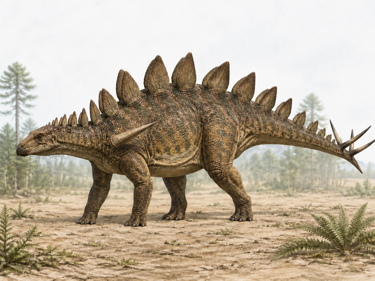 앞발과 뒷발의 길이가 비슷하였으며 골침을 가지고 있는 튼튼한 꼬리를 가지고 있었다. 1979 년 발견된 휴양고사우루스 화석은 총 12 구의 화석은 비교적 보존이 잘된 골격들이 발견되었다. 눈앞과 아래턱 중간에 작은 구멍이 있었다. 휴양고사우루스는 다양한 거대 수각류들과 함께 살았지만 이 포식자들은 휴양고사우루스를 거의 공격하지 않았다. 목부터 등을 따라 꼬리까지 난 심장 모양의 골판과 골침은 포식자들을 위협할 수 있는 무기였다. 특히 꼬리 쪽에 있는 4 개의 골침을 이용하여 무서운 포식자들을 다치게 하거나 심하면 죽일 수도 있었다.