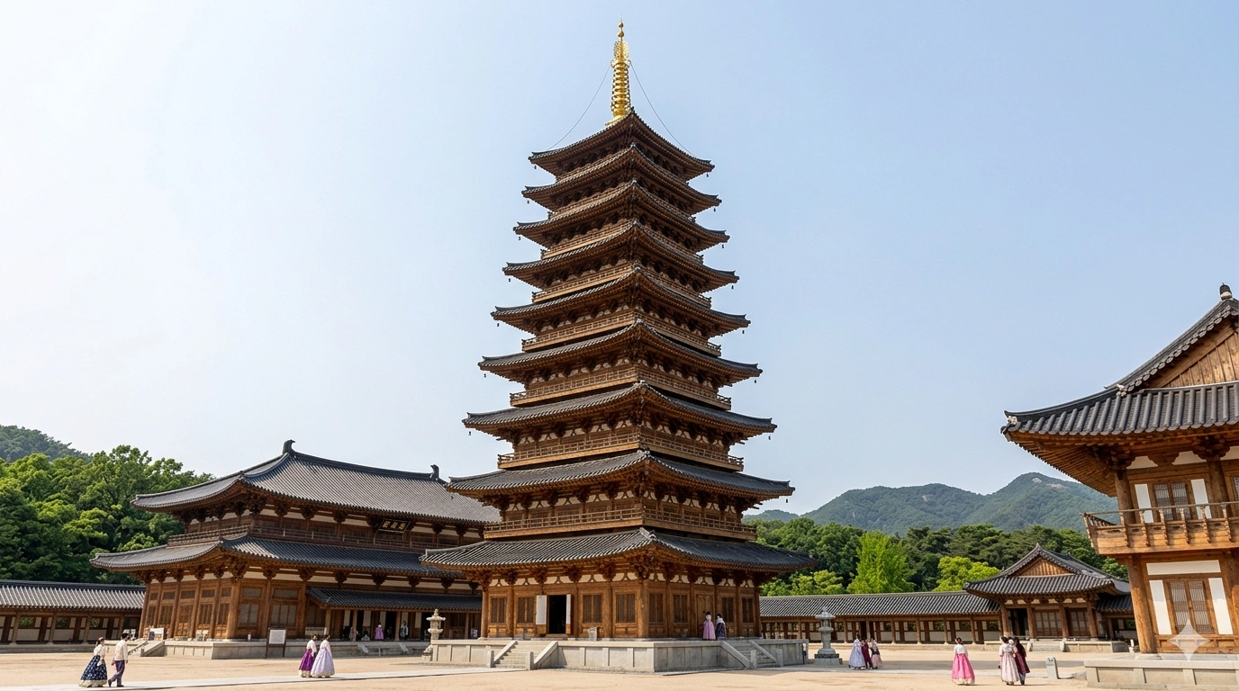 셋째, 고대 건축의 비례미이다. 목탑은 위로 갈수록 좁아지는 체감률을 적용하면서도 각 층의 옥개석(지붕) 두께와 층간 간격을 웅장하게 설계했기에, 현대의 효율 중심적인 아파트 층고와는 비교할 수 없는 수직적 규모를 갖게 되었다.