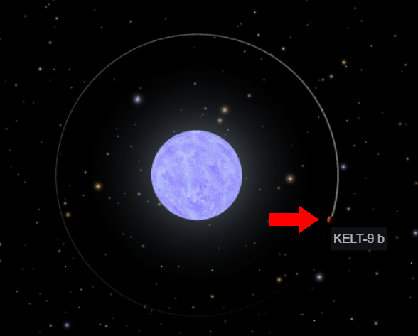 이토록 기괴한 온도가 나타나는 이유는 모항성인 KELT-9와의 거리가 불과 0.03462AU(천문단위, 1AU는 지구와 태양 사이의 평균 거리인 약 1억 5,000만 km를 의미함. 따라서 0.03462AU는 약 500만 km로 지구-태양 거리의 30분의 1 수준임)로 매우 가깝기 때문이다. 모항성 자체도 태양보다 2배 이상 뜨거운 온도를 자랑하는 별이며, 켈트-9b는 이 별을 단 1.5일 만에 한 바퀴씩 공전한다. 너무 뜨거운 온도 탓에 대기 성분은 분자 상태로 존재하지 못하고 원자 상태로 쪼개져 있으며, 대기 중에는 기화된 철과 티타늄 같은 금속 성분이 검출될 정도다. 사실상 행성이라기보다 금속이 증발해 떠다니는 거대한 가마솥에 가깝다.